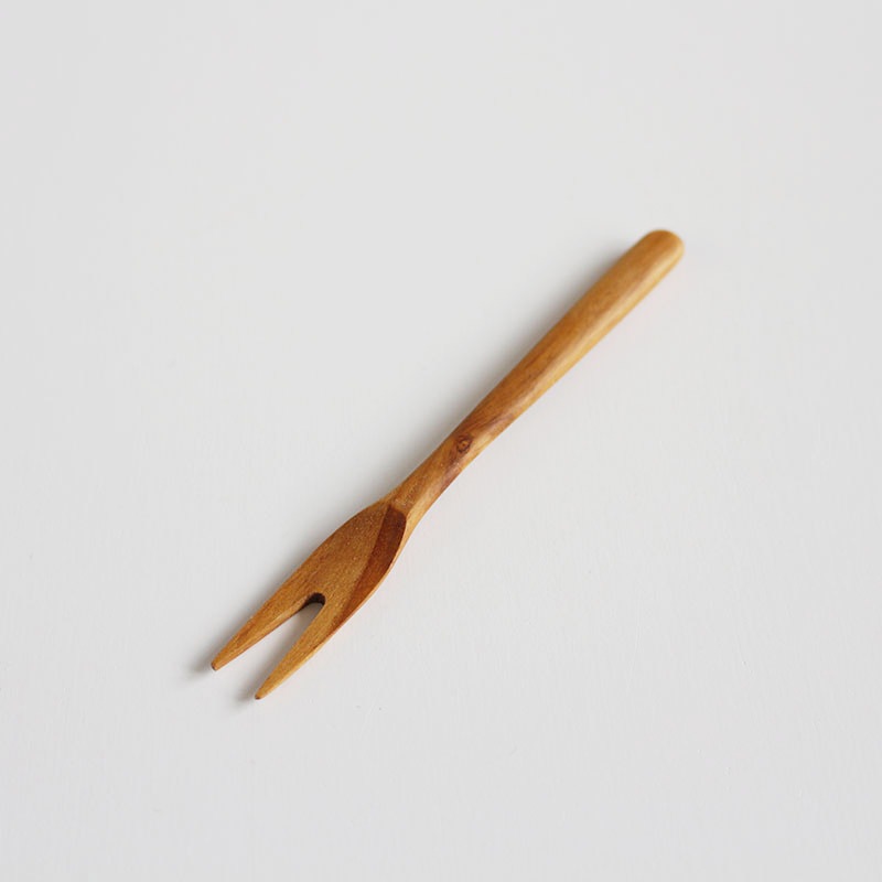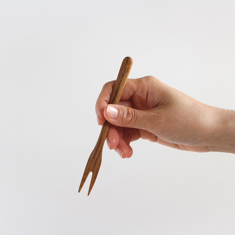 すらりとした細めの柄は持ちやすく軽やか。水に強いチーク材を使い、質感を大切にオイルで仕上げています。器へのあたりがやさしい木のカトラリーは、金属のカトラリーによるメタルマークや、擦れる音が気になる方におすすめです。Sサイズはフルーツやデザート、小さいお子様にもおすすめです。