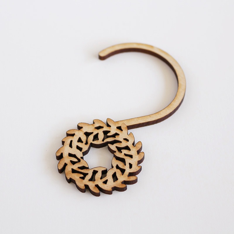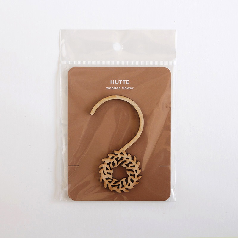 植物や動物の形をレーザーで彫刻した木のアロマ用チップです。お手持ちのアロマオイルなどを塗って染み込ませればディフューザーとして香りを楽しめます。木のお花フックタイプは左からデイジーとリーフの2種類のご用意です。 フックタイプはポールやノブなどにひっかけて飾れます。