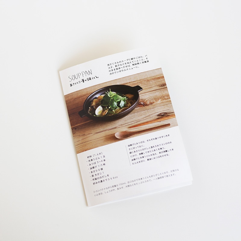 あさりと三つ葉の鍋うどんのレシピが付いています。