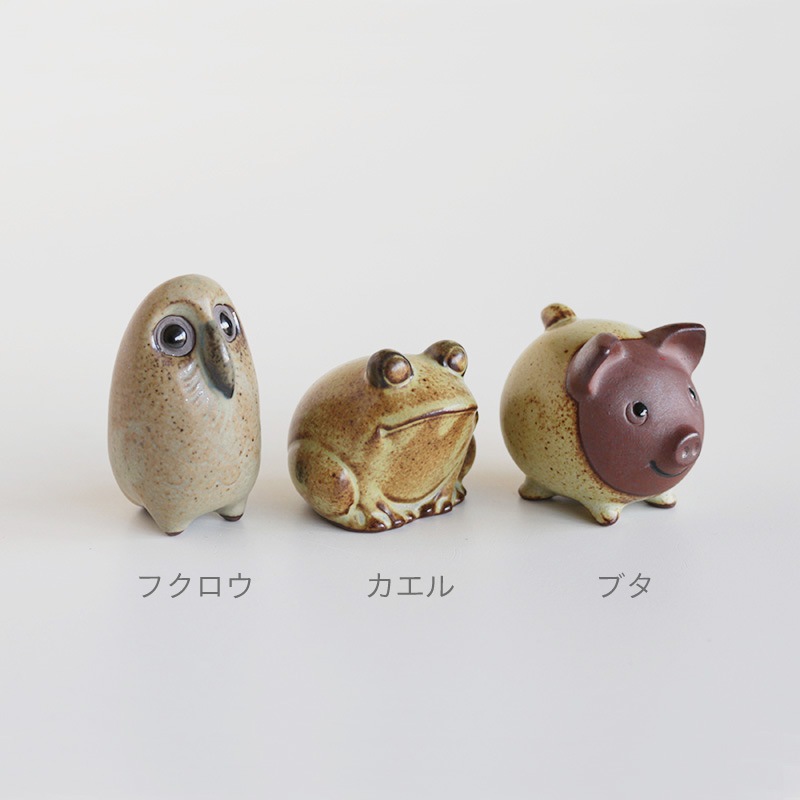 | サイズ | ブタ:5×4.5×4.5cm フクロウ:3.5×3.5×6cm カエル:4.5×4.5×4cm |