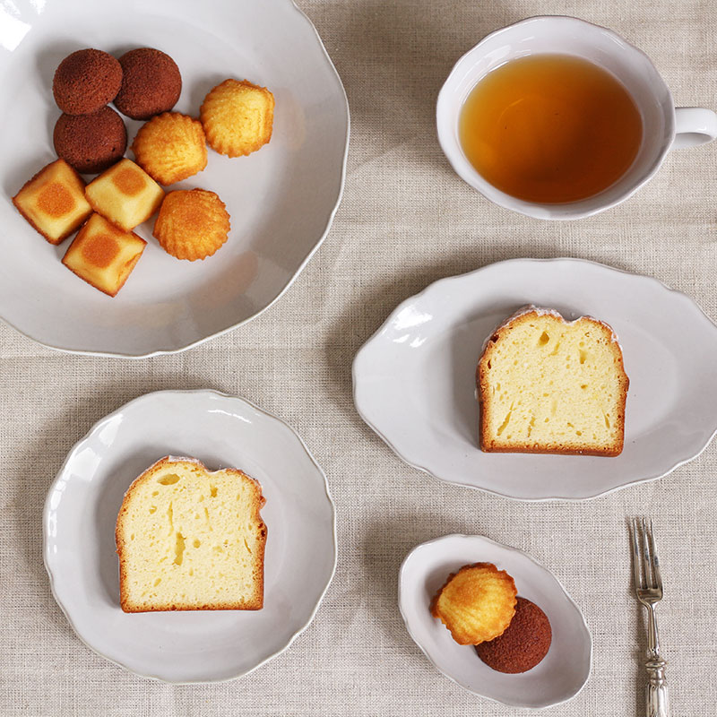 グラサージュシリーズは赤土に白い釉薬をかけたアンティークホワイトと、緑味を帯びた表情のある黒釉のアンティークブラックの2色展開です。「カップ」「ラウンドプレートS」「ラウンドプレートL」「オーバルボウルS」「オーバルプレートS」「フルーツコランダー」の計6アイテムで構成しています。優雅でクラシカル、花のようなフォルムがシックなシリーズです。