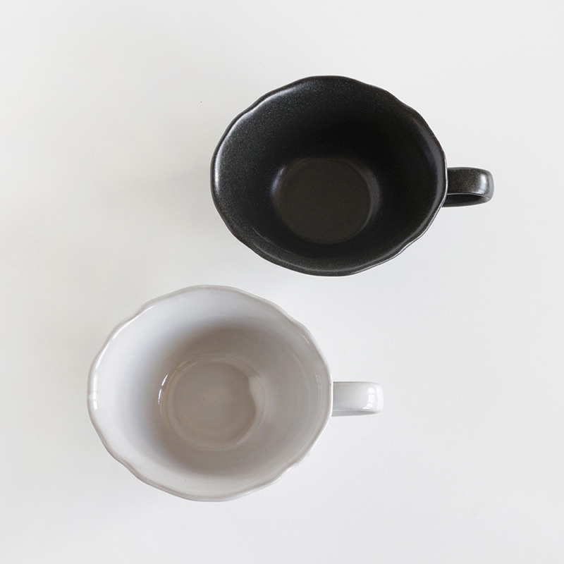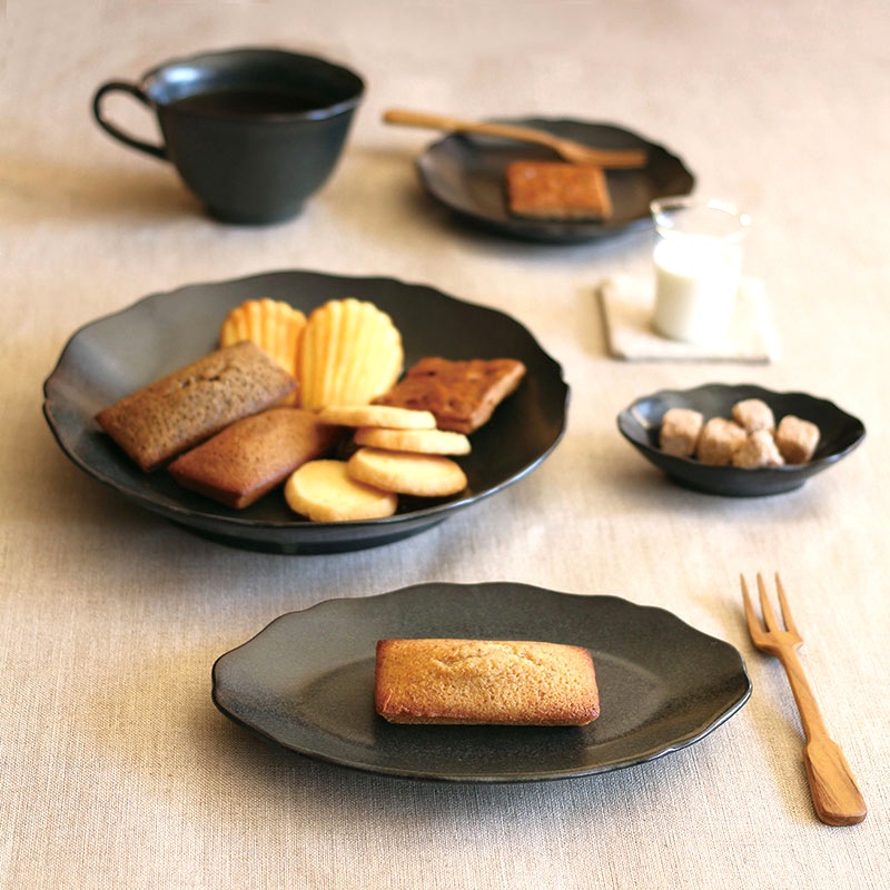 グラサージュシリーズは赤土に白い釉薬をかけたアンティークホワイトと、緑味を帯びた表情のある黒釉のアンティークブラックの2色展開です。「カップ」「ラウンドプレートS」「ラウンドプレートL」「オーバルボウルS」「オーバルプレートS」「フルーツコランダー」の計6アイテムで構成しています。優雅でクラシカル、花のようなフォルムがシックなシリーズです。