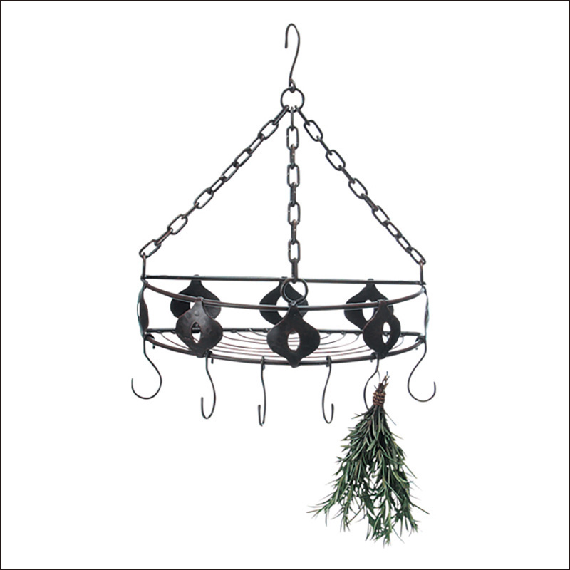 ハーブやお花をつるしておけるアイアンのハンガーです。網状になった上の面は、ニンニクなどの置き場所にもおすすめです。フックにお気に入りのキッチンツールを吊るせば素敵なキッチンに大変身です。
